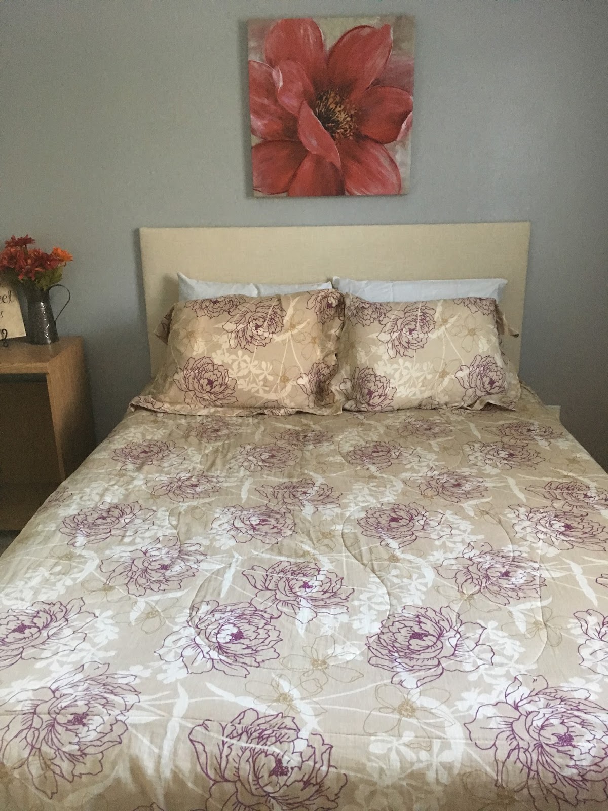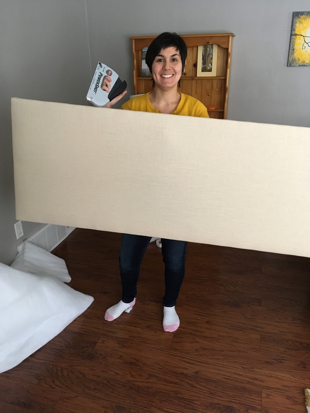 The second was a headboard that I made. My sister Joanie and her husband came to visit just last week and I was very eager to make a few improvements to the guest bedroom. The first of these improvements was a headboard for the queen bed. It really does make a room look more polished when there is a headboard. I documented the process. I got this idea from the book I reviewed last post, Young House Love.