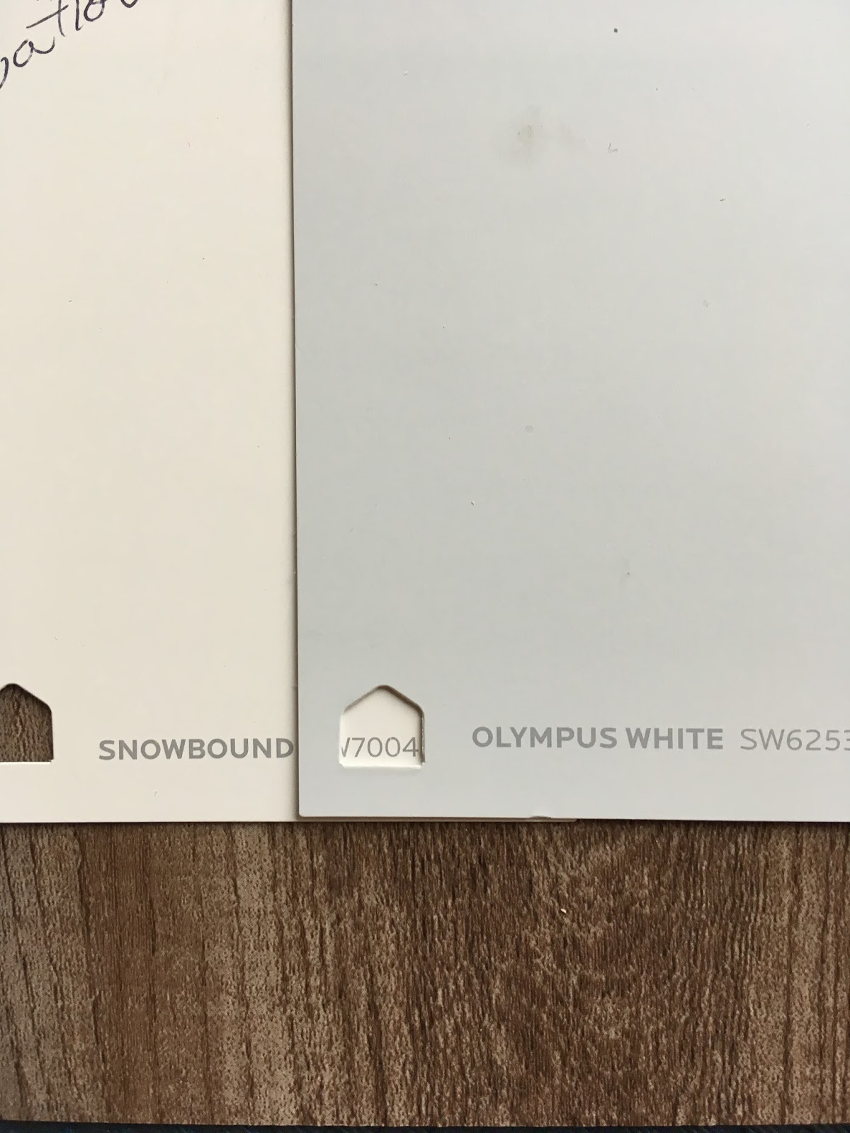 | Snowbound and Olympus White with a rustic laminate wood flooring. I am going for a modern farmhouse look. |