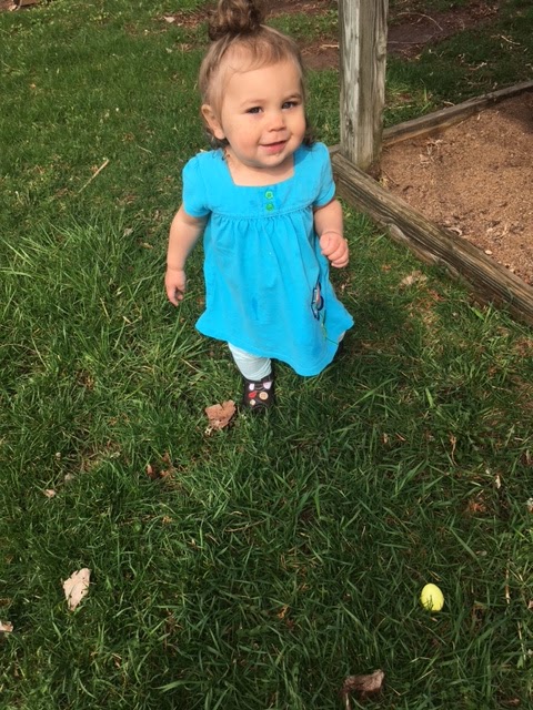 Brooklyn is starting to really get vocal. She is so smart! She responds with head nods and is running now. She blows us all away. She doesn’t like TV and never watches; she loves to get in on the action with her older sisters and still likes to drink a bottle. She eats well most of the time, but won’t eat cheese. She likes bath time and likes consistency in bedtimes and nap times. She still naps twice a day, but I don’t know how much longer I will be able to do it. It will be hard to let go of the morning nap for me. Brooklyn has a head full of brown curly hair and is into everything right now. I have absolutely loved watching her discover the outdoors. She loves to be outside and her big blue eyes are wide open as she walks around and touches and eats everything. She is so sweet and gives us kisses with mouth wide open. She continues to be a ray of sunshine in our family. I am so thankful for her, especially on my hard days.